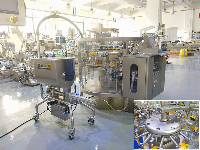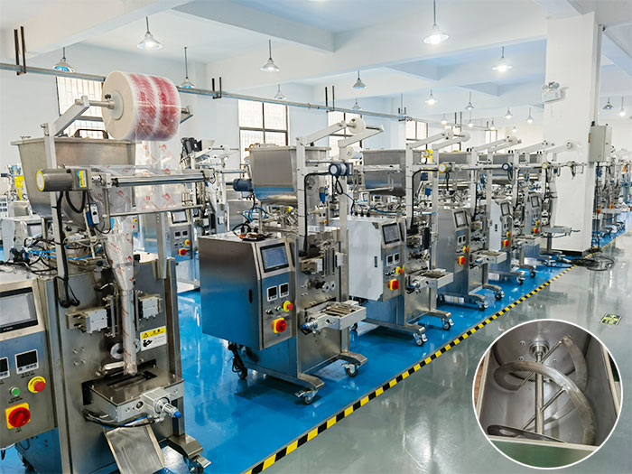 对比传统的人工手动包装,自动化肉沫酱料包装机U型搅拌更均匀,生产速度更快,早期多名人工不断反复的调试才能完成的精准度,而今,只需一台自动化肉沫酱料包装机就能够实现均匀、精准、高效的生产模式。
